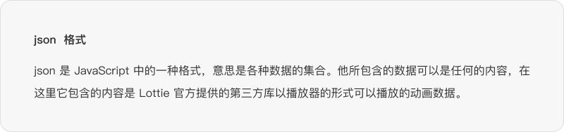 我们的开发人员拿到 Bodymovin 输出的 json 格式是无法直接使用的,他需要在代码中加入 Airbnb 提供的 Lottie 第三方库来读取播放,相当于 lottie 文件在我们各个端口设备上的播放器的作用,它会占用一定的系统空间,但是一般情况下也不会很大,从产品长远发展的角度来说肯定是可以给我们 App 节省非常多空间的,这也正是 Lottie 可以在这么 短的时间内被这么多公司所认可的原因之一。