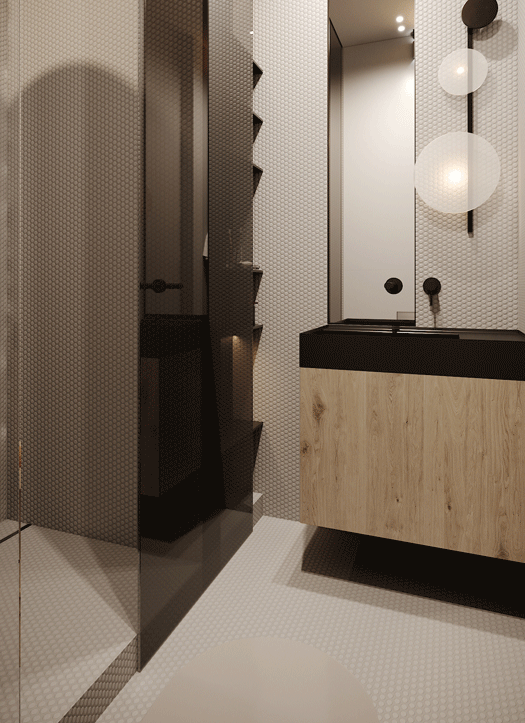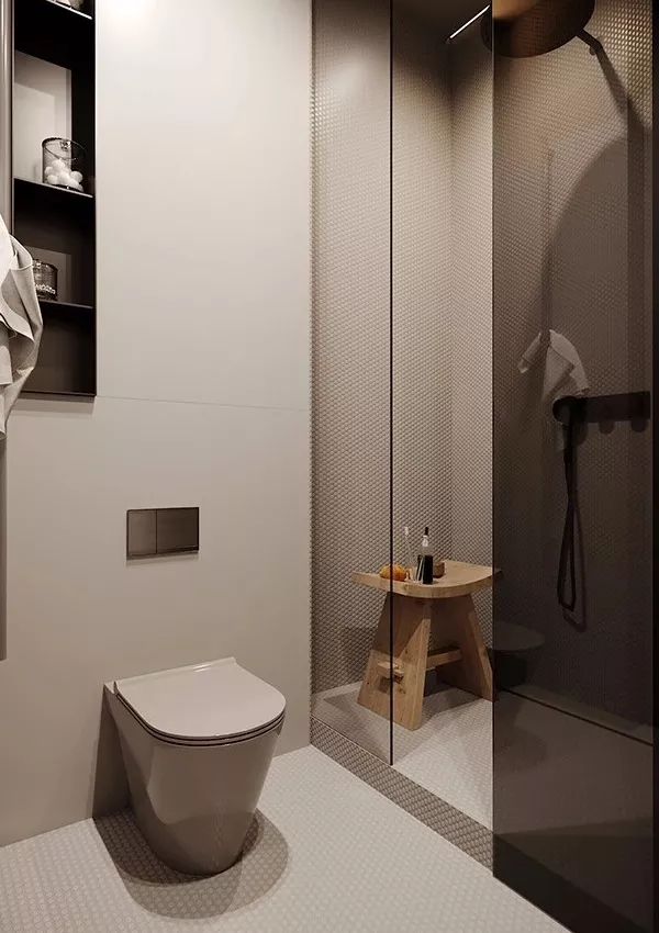 主卫延续了整体低调含蓄的风格,在装饰上却多了一些小心思,从储物柜的设置、香薰摆放位置以及小灯饰的悬挂,每一个都恰到好处