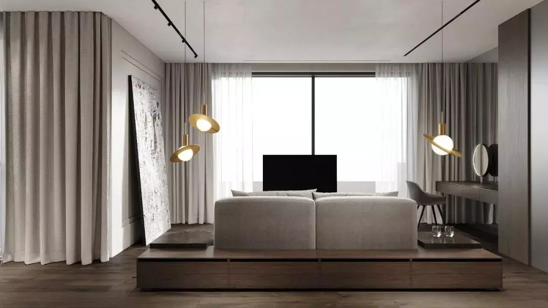 卧室采用暖色系,大面积的白色+木色装饰,灯光的点缀,展现出空间的质感魅力,精致软装搭配,塑造出优雅的艺术气息