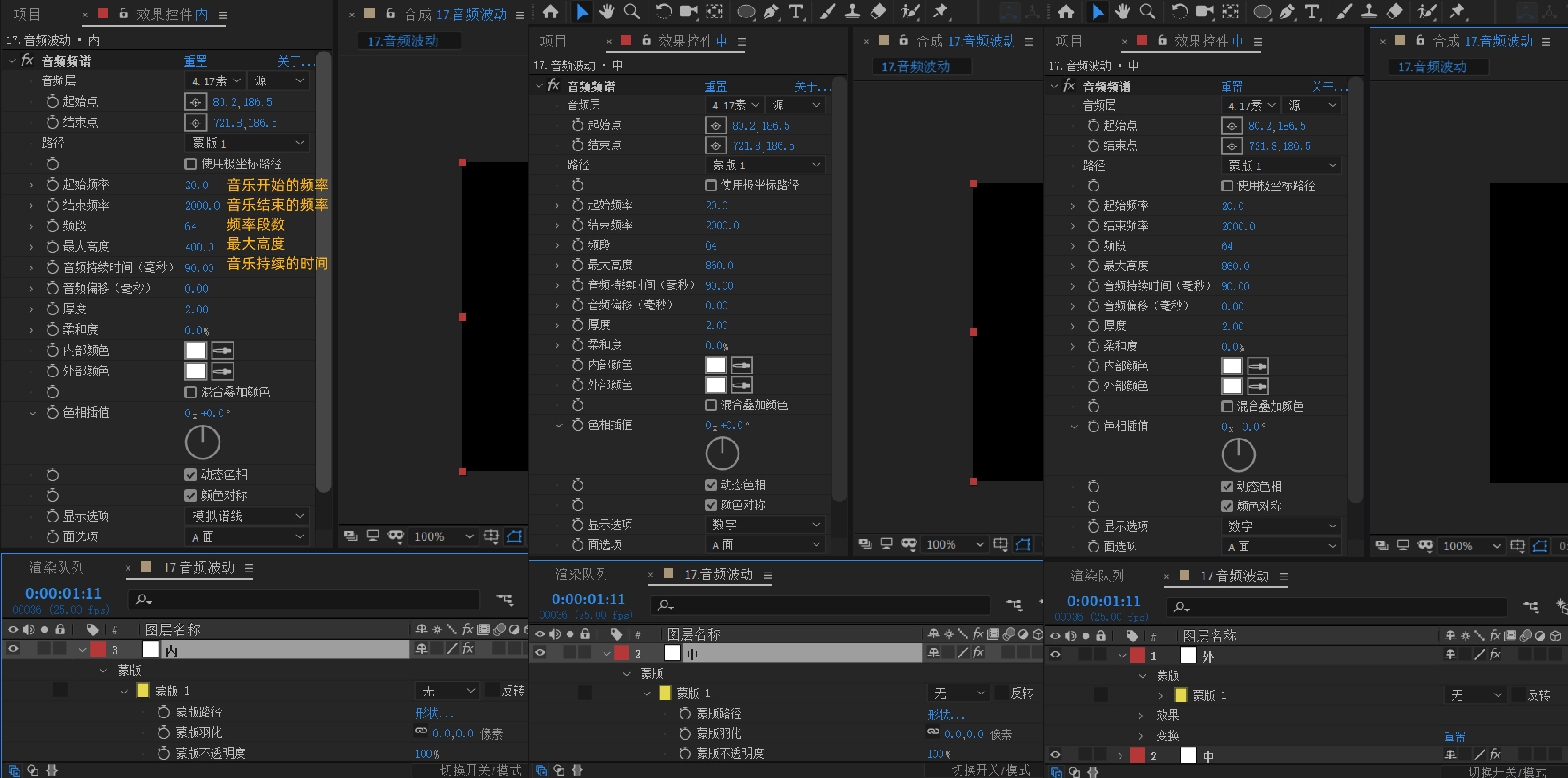 拓展应用:可以做不带蒙版的效果或复制多个波形改变参数调节出更多的效果。