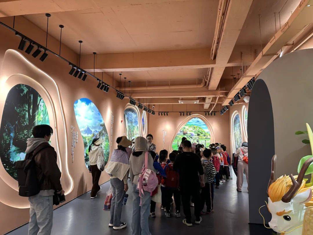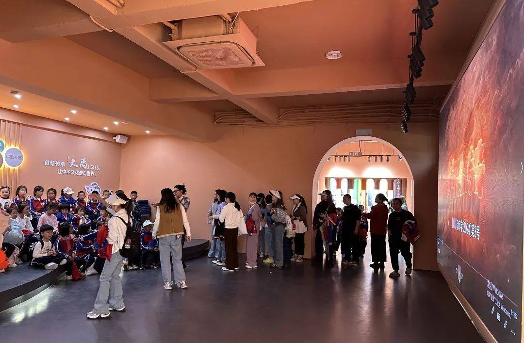 学生们先后参观了大禹IP体验馆主题墙、少年禹成长史区、科普长廊、由六大系统构建的超级生态链区、文创衍生产品区、《禹生石纽》数字沉浸式体验空间等。