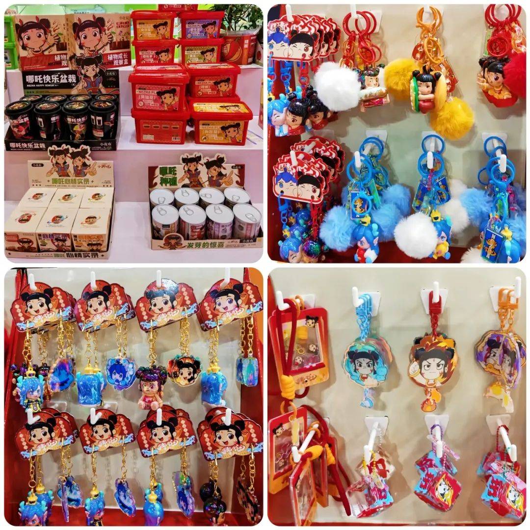 哪吒快乐盆栽、哪吒钥匙扣、哪吒包挂等潮玩文创产品,融合时下流行元素,满足年轻消费者对国潮美学的需求。