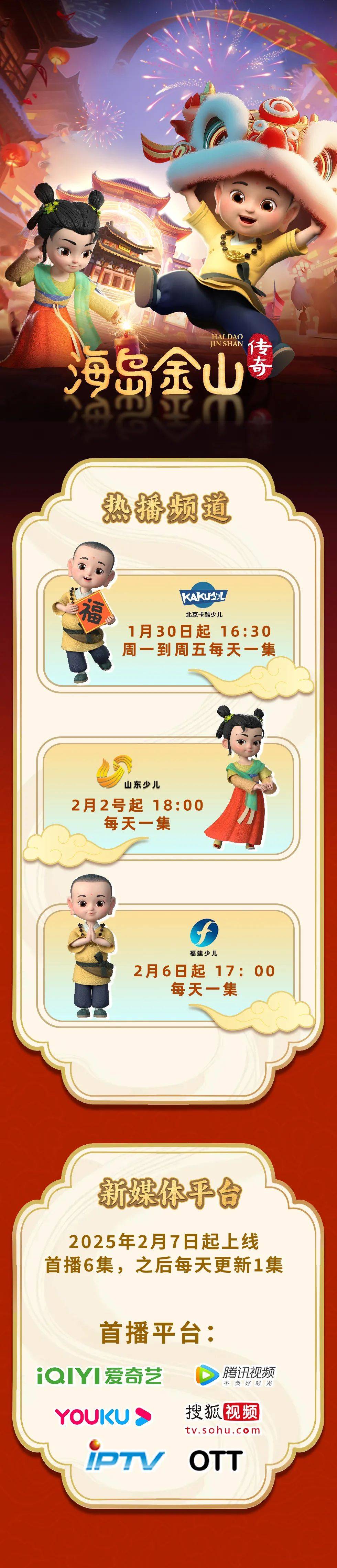 动画片《海岛金山传奇》全国热播中,优酷、腾讯、爱奇艺、IPTV、OTT等新媒体平台均已上线,欢迎收看!