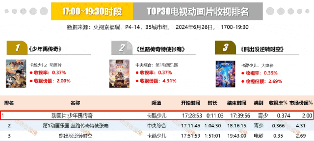 自第一季开播以来,《少年禹传奇》热度持续飙升,收视口碑双双走高。多次上线央视少儿、卡酷少儿、四川少儿、山东少儿等省级卫视,收视率屡获全国同时段收视冠军,引发社会广泛关注与好评