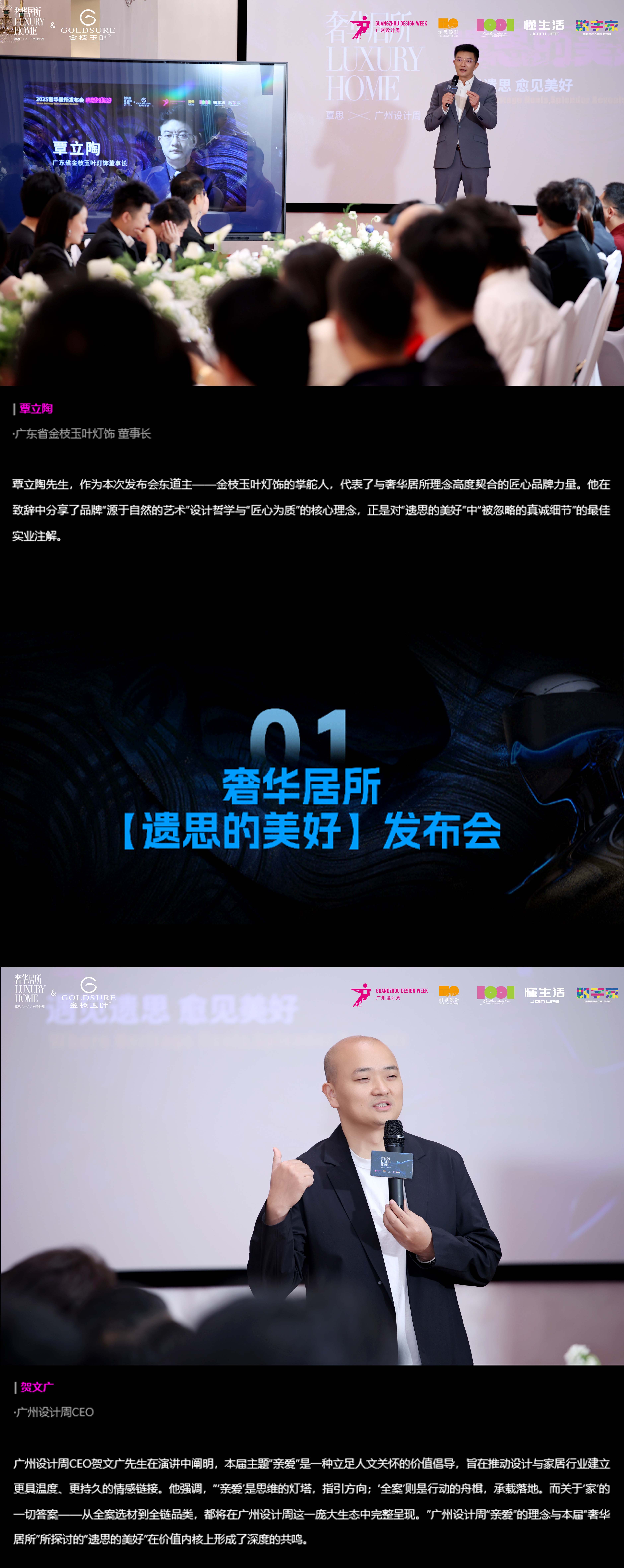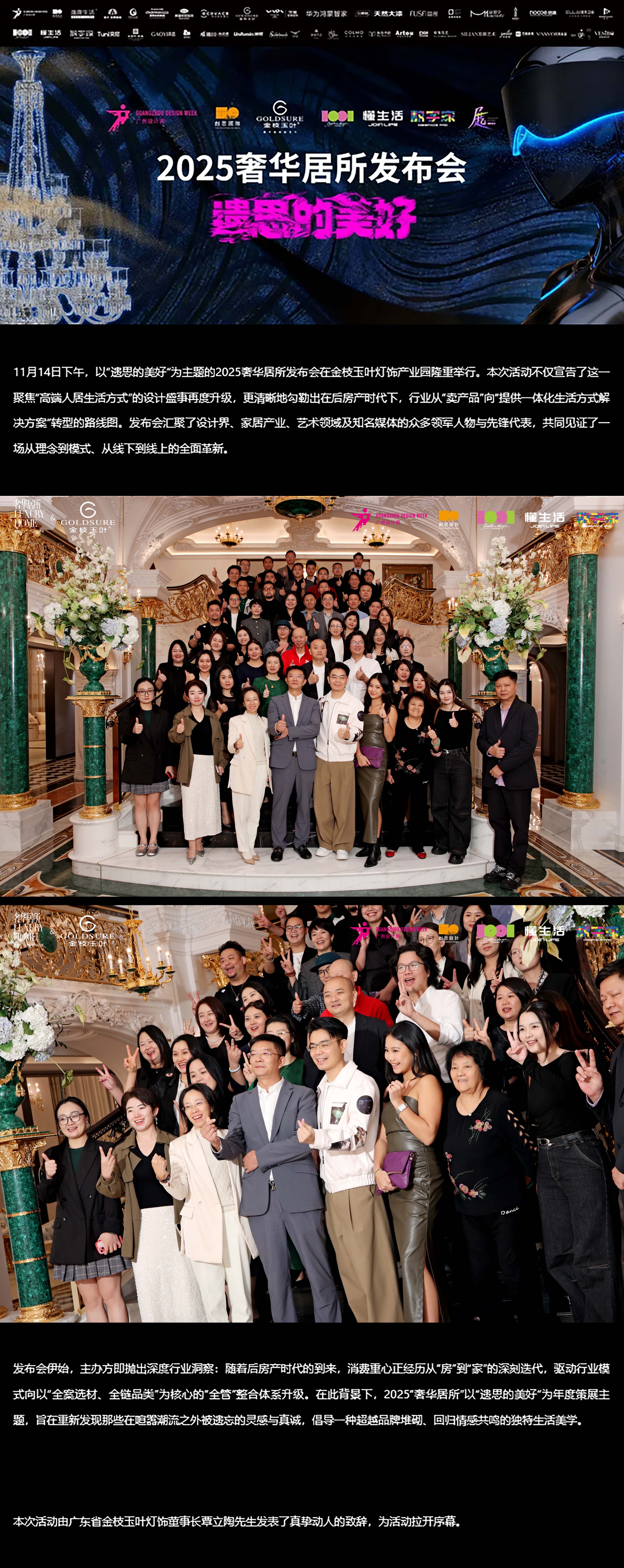 第一组剪彩嘉宾:奢华居所主策展人覃思先生,全景光设计联合创始人兼主理人Linda Wang|王淑珍女士,懂生活联合创始人、数字家首席架构师杨茗杰老师,广东省金枝玉叶灯饰董事长覃立陶先生,2025奢华居所特邀艺术家、跨界设计师郭承辉老师,广州设计周CEO贺文广先生,芬尼【董事长的房间】市场运营总监党新锐先生,美国邓恩涂料中国色彩总监Lillian Wu女士,资深媒体人、想象鹏飞文化传媒内容合伙人李可欣女士。