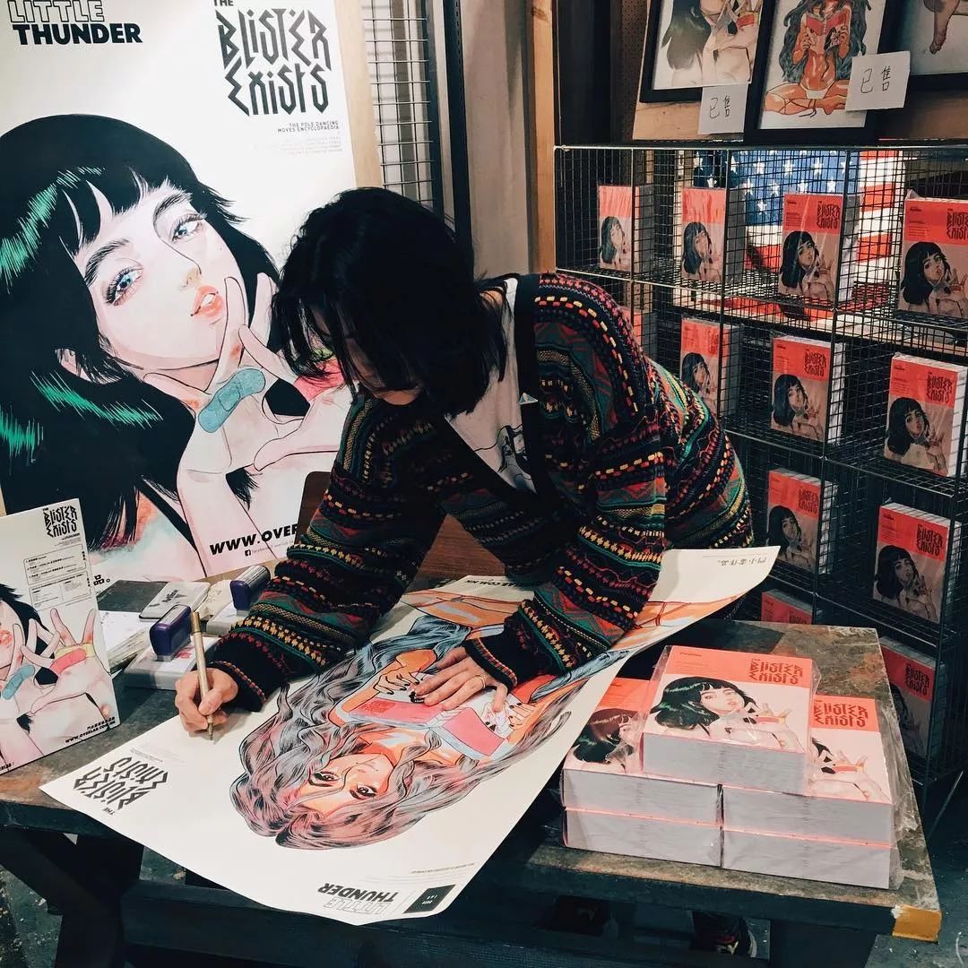 也许是来源于跳钢管舞的灵感,她花了2年多的时间,画下了1180种舞姿,编成全世界第一本钢管舞图鉴集——《THE BLISTEREXISTS》。