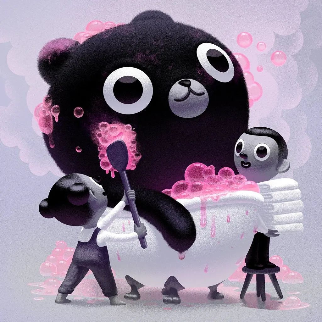 “每次我看到Haejin关于清洁乐趣的奇怪、混乱又美丽的水彩作品时总会笑起来。”Andrew Sondern(艺术总监)