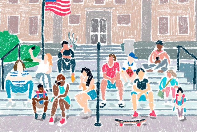 “Dadu是一位尤其具有共情心的插画师,与我们的一起为残疾人系列创作了很多有力的作品。在这件作品中,通过画面体现了社区、安置以及具有相对性的局外人。”Jim Datz(艺术总监)