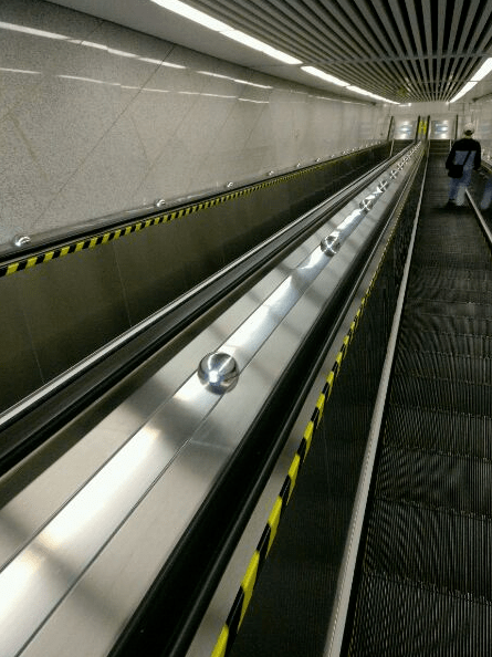 在电梯扶手上,每隔几米就有一个凸起的圆球。很多人说这是“防成龙装置”。