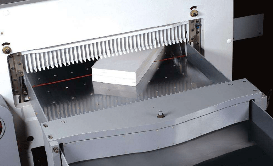 不晓得大家有没有用过切纸机,用起来每次都暴躁,一定要双手两个拇指同时操作,且要非常用力地按下“CUT”,才能顺利切纸。