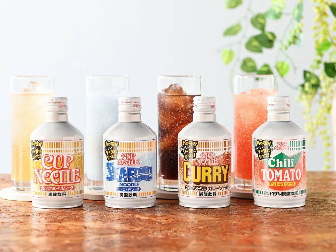 这款带着日清经典产品设计的瓶子,就是新款——泡面味的汽水!各种口味应有尽有,就是喝的时候得做好觉悟!