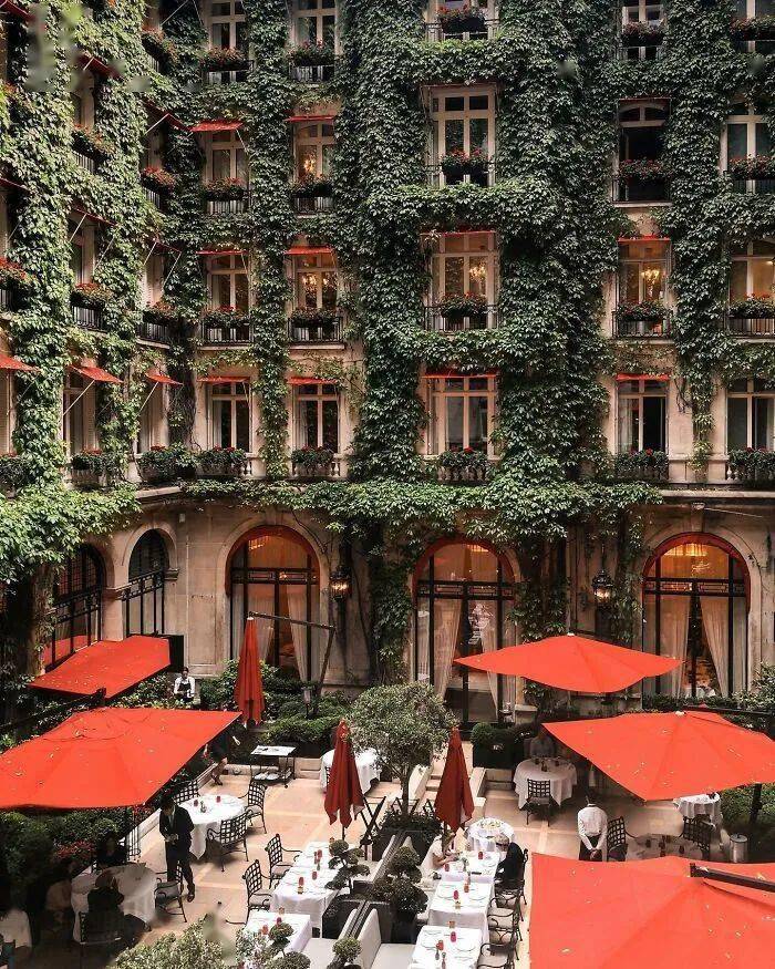 这栋历史悠久的奥斯曼风格酒店于1913年开业 位于法国巴黎第8区蒙田大道(Avenue Montaigne) 雅典娜广场 (Plaza Athénée) 的内部