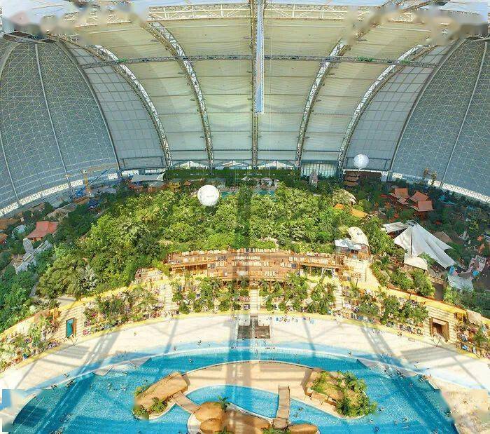 在旧的飞艇机库中建造的的热带岛屿位于德国柏林附近