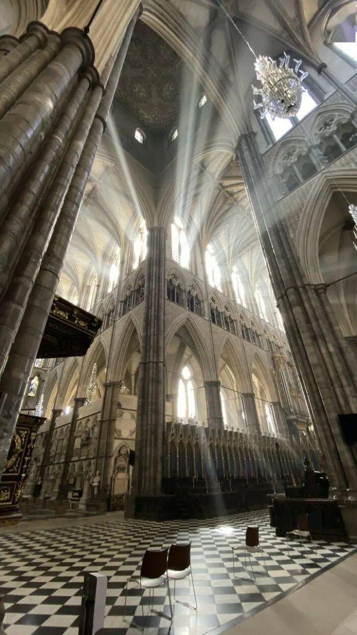 阳光透过英国伦敦敏斯特市的威斯敏斯特大教堂的柳叶窗
