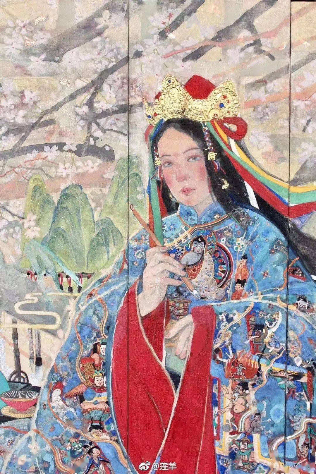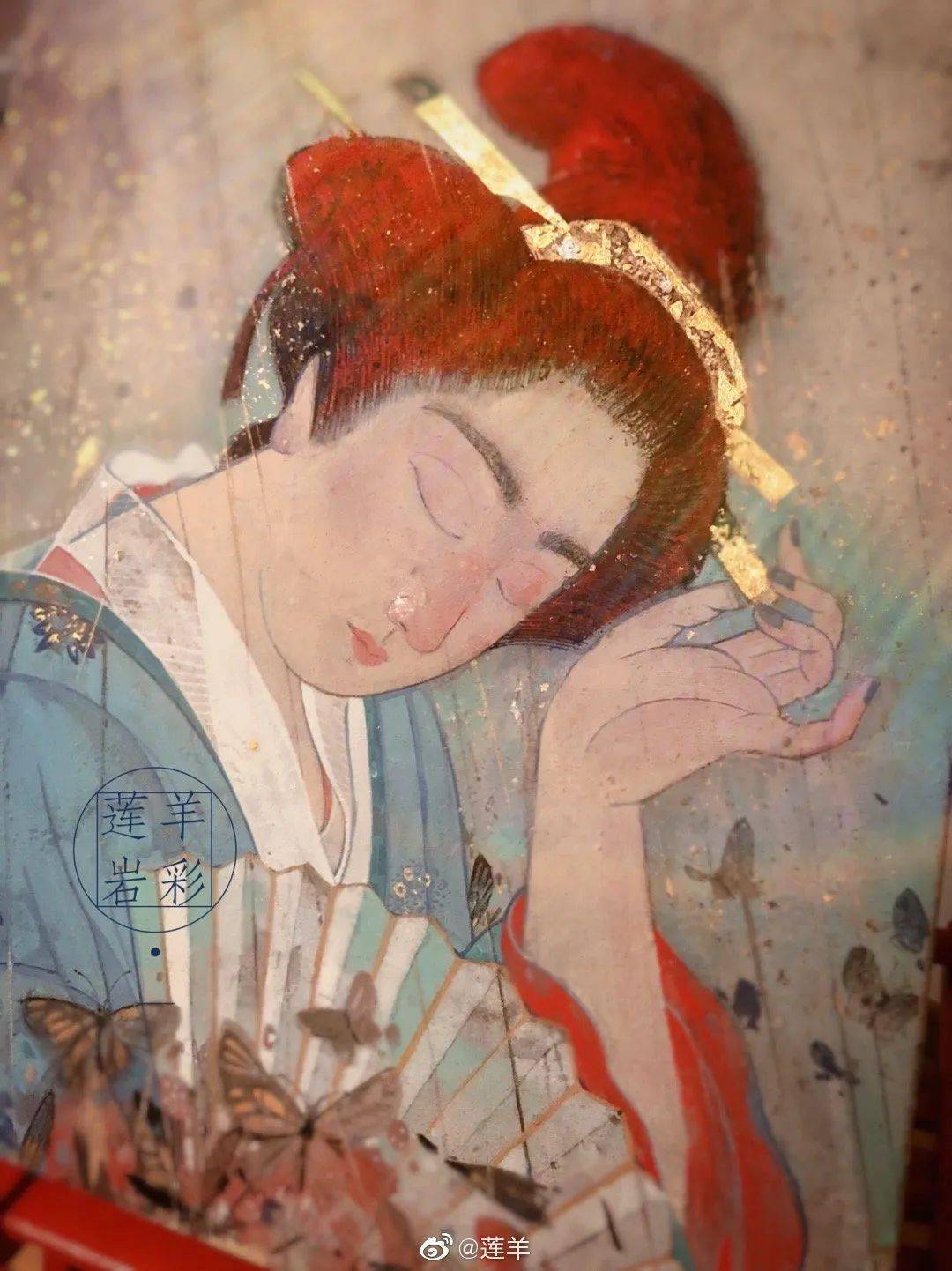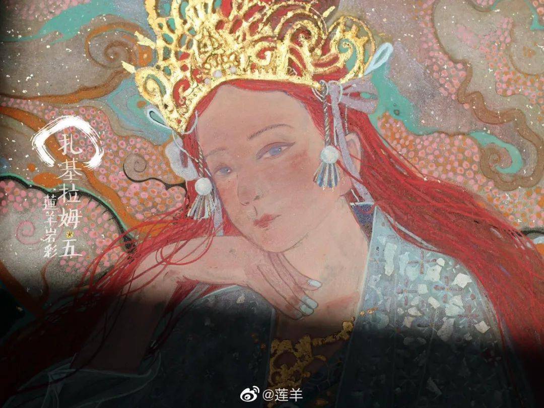 2018年,莲羊为王者荣耀绘制的,杨玉环岩彩画《乐天飞舞》,被法国国家博物馆收藏,惊艳世界。