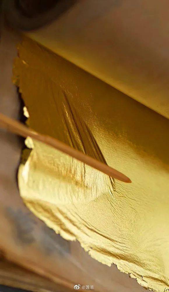 莲羊说:金箔的创作环节从来都是乱终求序,静静等待惊喜降临。
